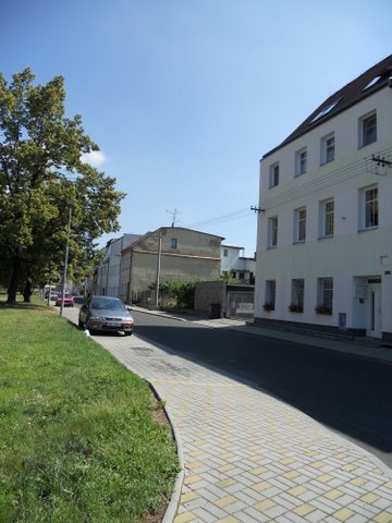 The above three photographs were taken in 1997 when I visited Sobědruhy with my parents. My father, Hans, is pictured in front of the lot where the synagogue once stood. My grandfather's ancestral home was located adjacent on the right side of the synagogue. Both were pulled down sometime prior to 1958. The building on the left side of the empty lot is the former Jewish Community House where the community offices were located. It may have also held classrooms and a rabbi's residence. The last photograph shows a portion of the former "Judengasse" now called Stare Ulice or "Old Street". There have been projects in recent years to modernize and beautify the streets not only of Teplice, but also of the Sobědruhy district.